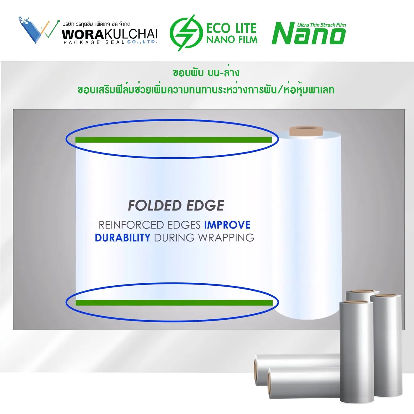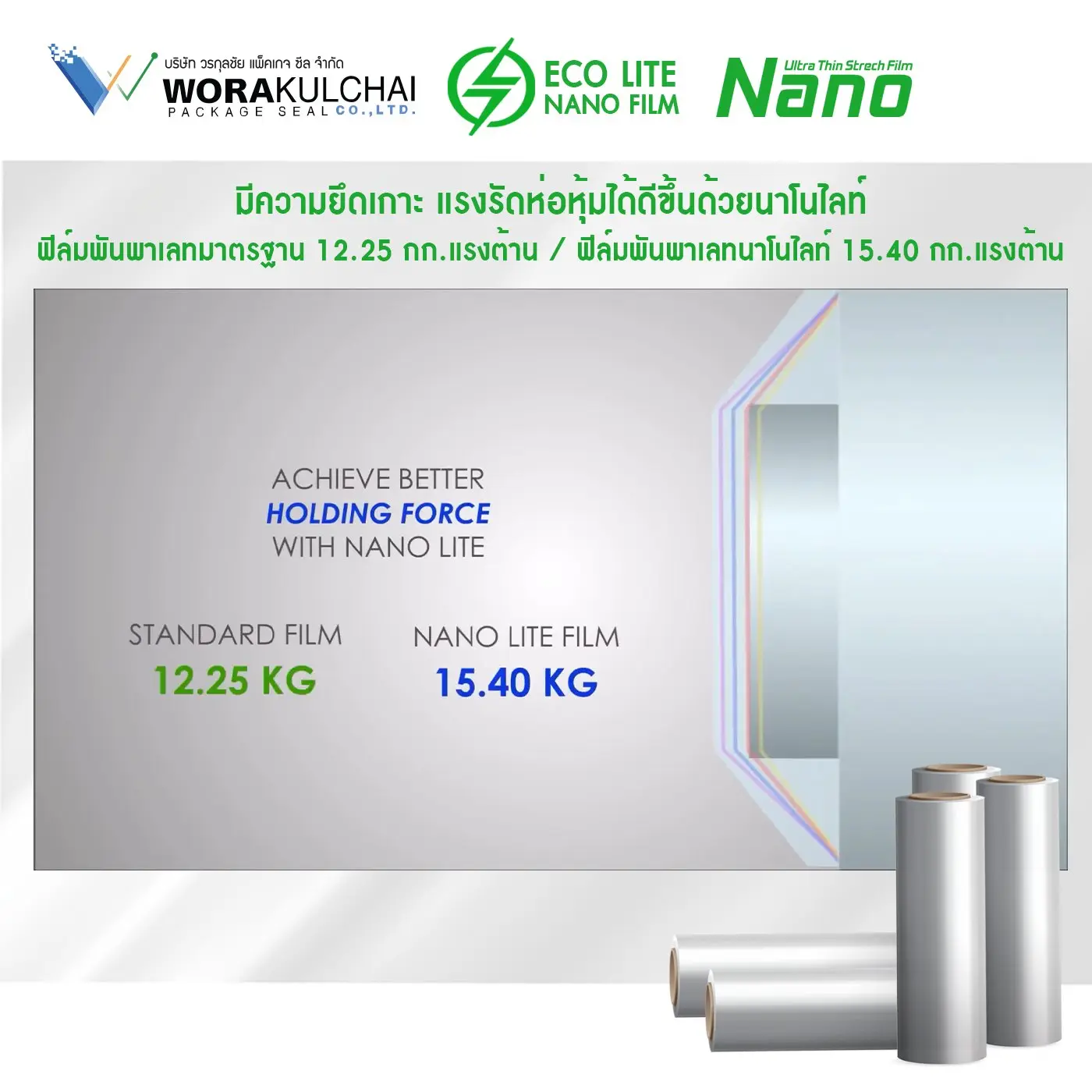 ฟิล์มพันพาเลท Eco ถูกออกแบบมาให้มีความแข็งแรงสูง แม้ว่าจะใช้ปริมาณฟิล์มน้อยลงเมื่อเทียบกับฟิล์มพันพาเลทรุ่นเก่า จึงช่วยลดการใช้ฟิล์มในการพันแต่ละพาเลท ซึ่งส่งผลให้ลดต้นทุนในระยะยาวได้อย่างมีประสิทธิภาพ - น้ำหนักเบาและยืดหยุ่น