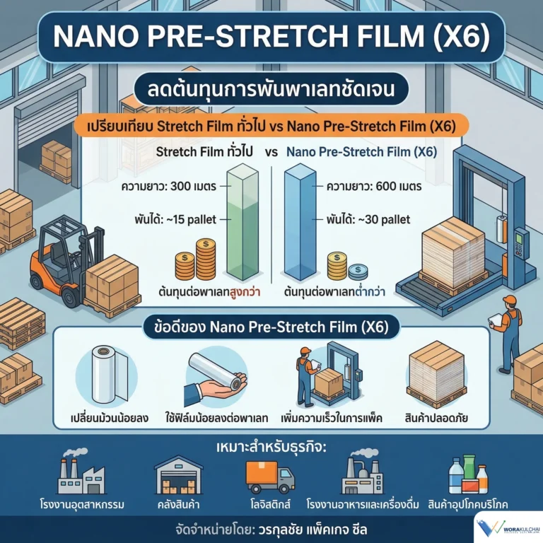 Nano Pre-Stretch Film (X6) ฟิล์มยืดอุตสาหกรรม ลดต้นทุนการพันพาเลท