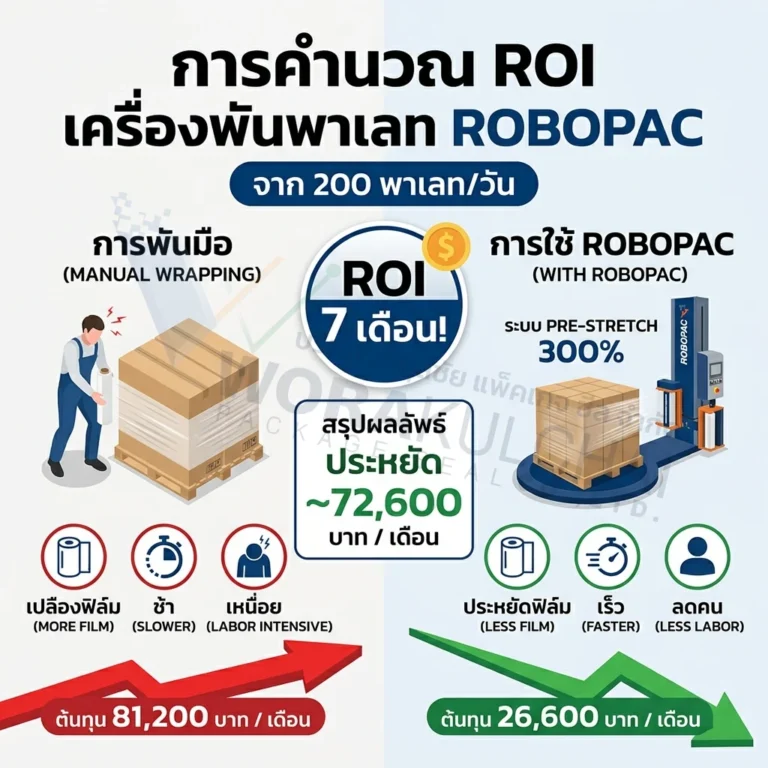 ตัวอย่างการคำนวณ ROI เครื่องพันพาเลท Robopac